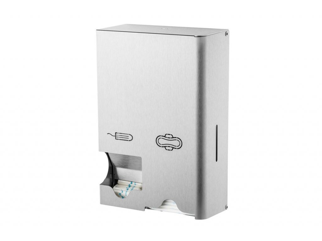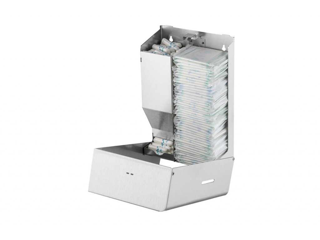 Nástenný zásobník na tampóny a hygienické vložky, brúsená nehrdzavejúca oceľ.